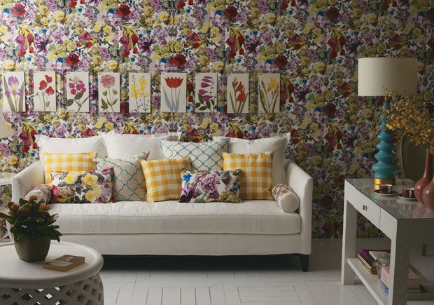 “É importante saber lidar com essas dimensões diferenciadas, por exemplo, pode-se combinar almofadas de listras com outras de xadrez. Ou listras com Floral. Para isso é importante observar a largura das listras, do xadrez e da estampa floral. Essas dimensões, dos diferentes tipos de estampa precisam dialogar e seguir o mesmo padrão de tamanho”, orienta o designer.
