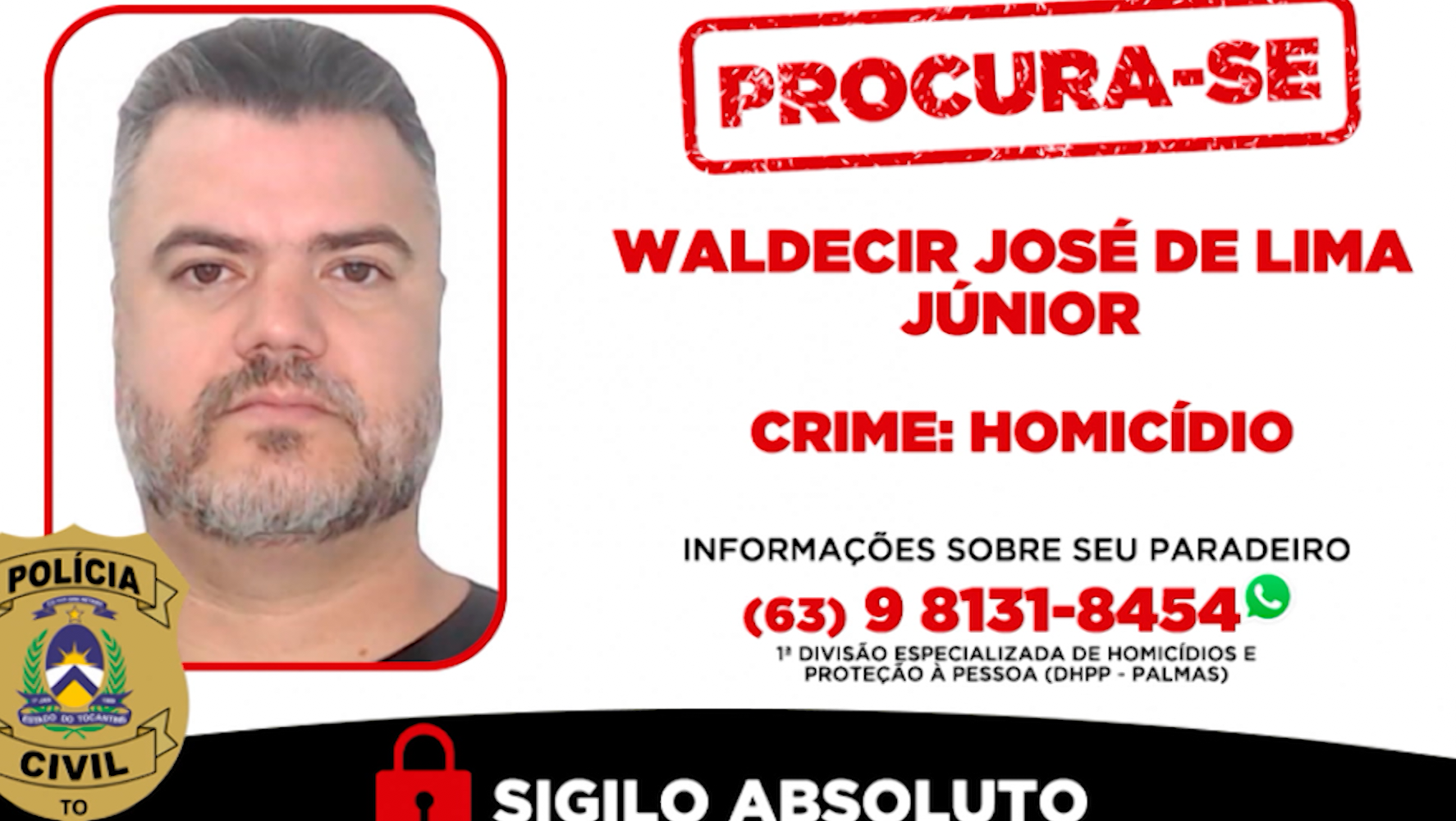 A polícia identificou o suspeito como Waldecir José de Lima Júnior, 40 anos. Segundo a Secretaria de Segurança Pública do Tocantins, ele teve prisão preventiva decretada, está foragido e é considerado de alta periculosidade.